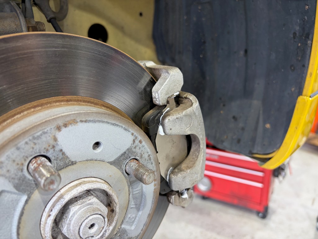 車検作業ですのでブレーキ周りもしっかりと分解して点検いたします。