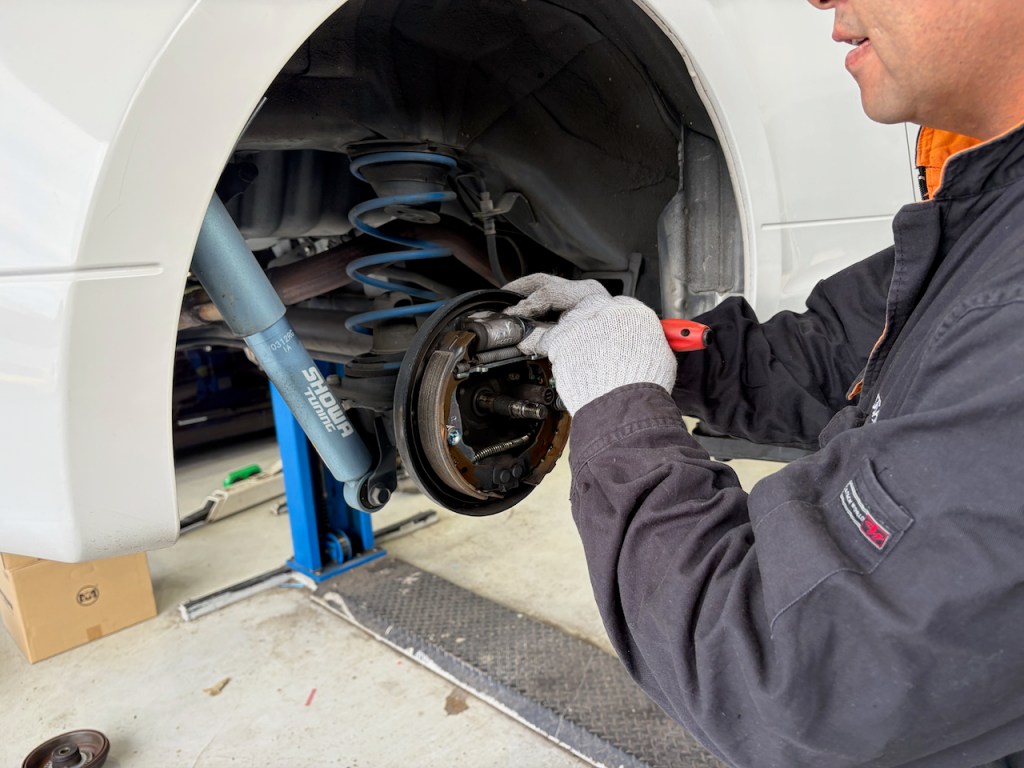 車検整備ではブレーキ周りもしっかりと点検いたします。