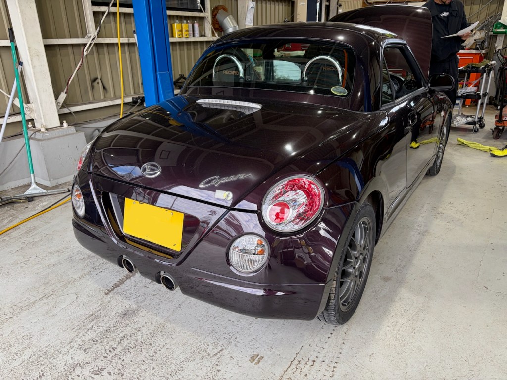 こちらの紫コペンさんは中古車仕上げ作業中〜