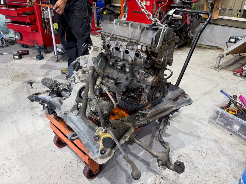 今回は事前点検でクラッチ交換がおすすめの状態でしたので、まずはエンジンミッションを降ろして、その上で必要整備箇所を精査していきます。