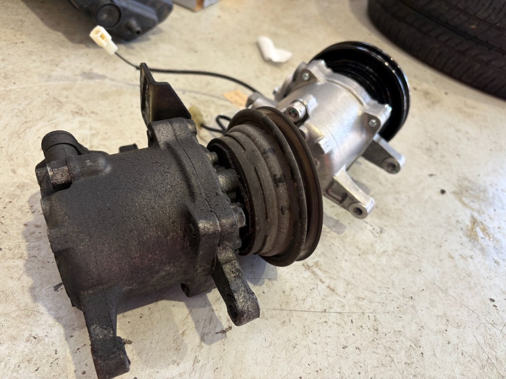 エアコンのコンプレッサーがオイル漏れによって真っ黒になっていました。