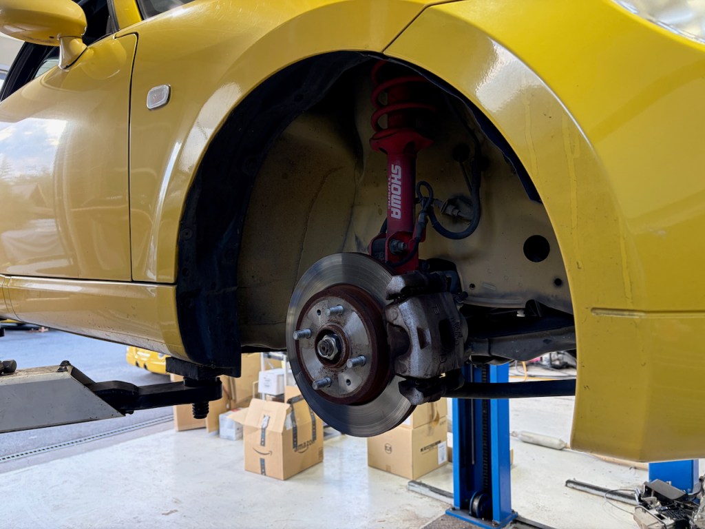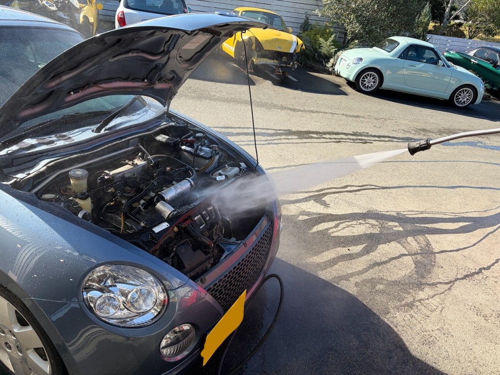こちらの水浴び中のコペンさんは車検整備の仕上げ作業中です。