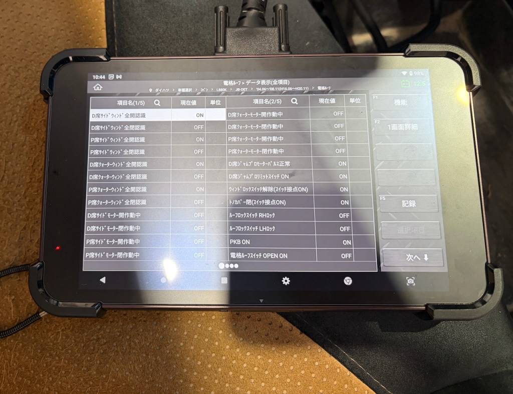 診断機を上手く活用して各センサー状態やコンピューターの認識値を確認してスピーディーに修理します。