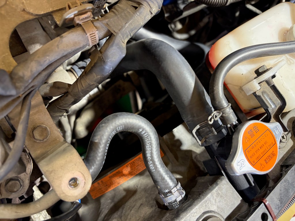 軽自動車でFF4気筒であるが故にやりにくい作業の代表格ですが、工具を駆使して作業を進めます!