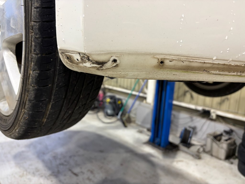 今回は純正バンパーに穴が残ってしまいましたので、こちらは穴埋め処理を行います。