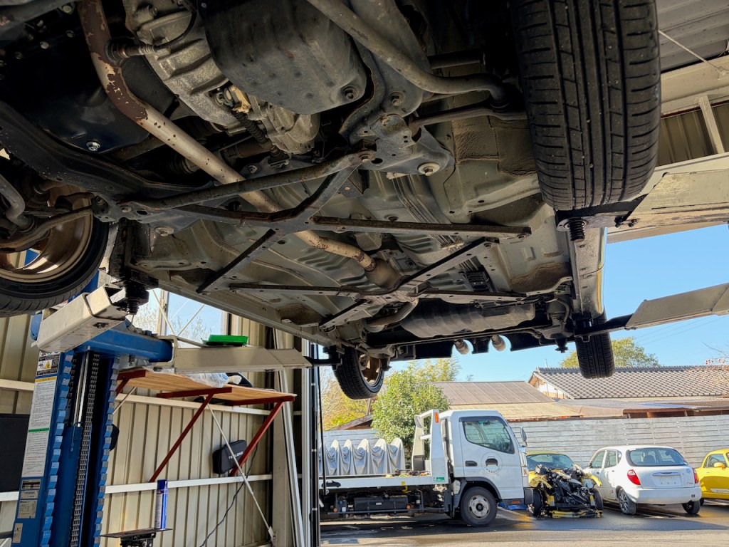 奥のリフトの緑コペンさんは下廻りのサビ対策コースを施行いたします。