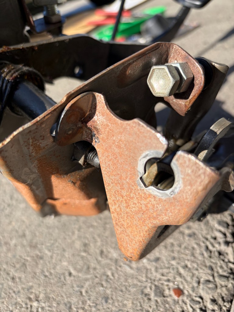 MT車の場合はクラッチワイヤー取り付け部に負担がかかりますので、ブラケットが割れたりするケースもございます。