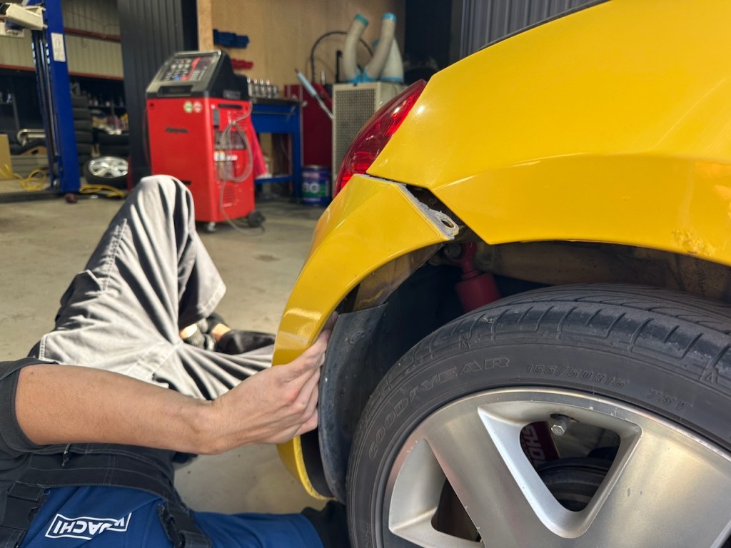 こちらの黄色コペンはストップランプの交換作業中。