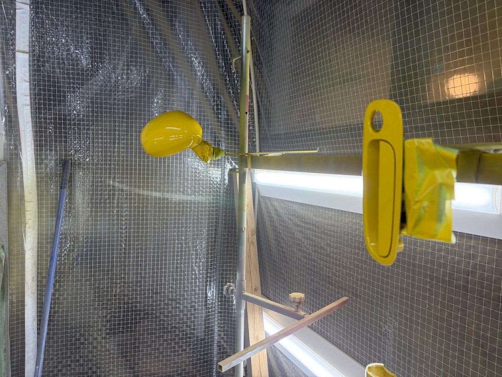 最後にご好評いただいているドアミラードアハンドルの調色塗装。また1台作業させていただいております!